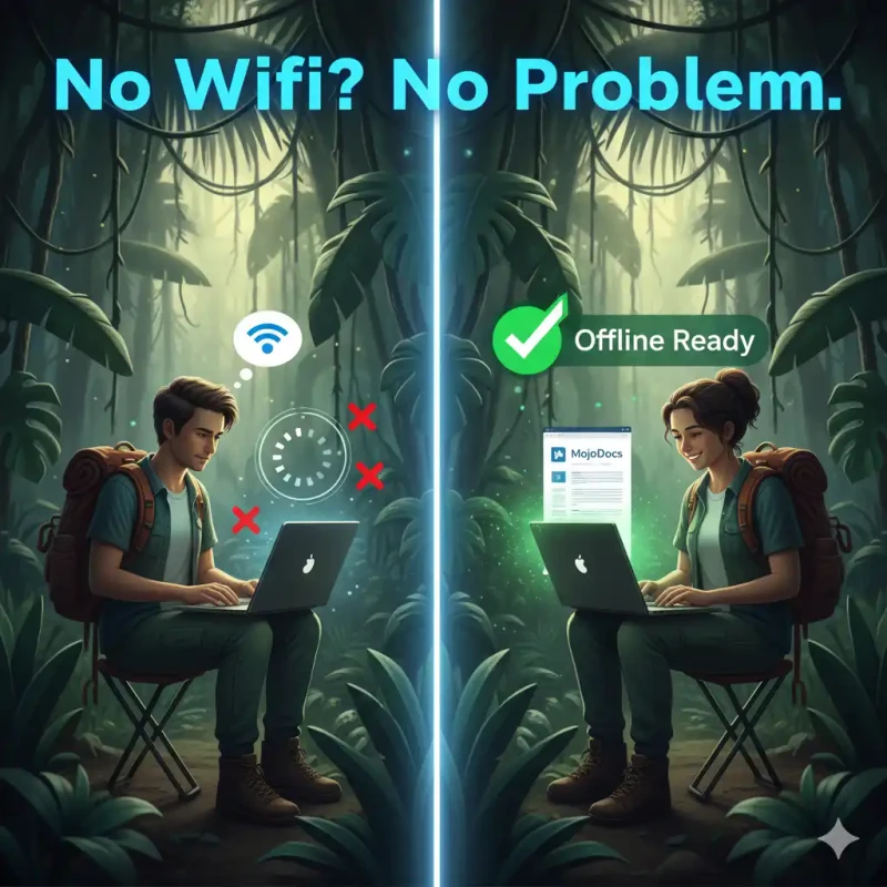 Software should work for you, not for your ISP. By making MojoDocs offline-first, we ensure that your productivity is never held hostage by a poor signal.